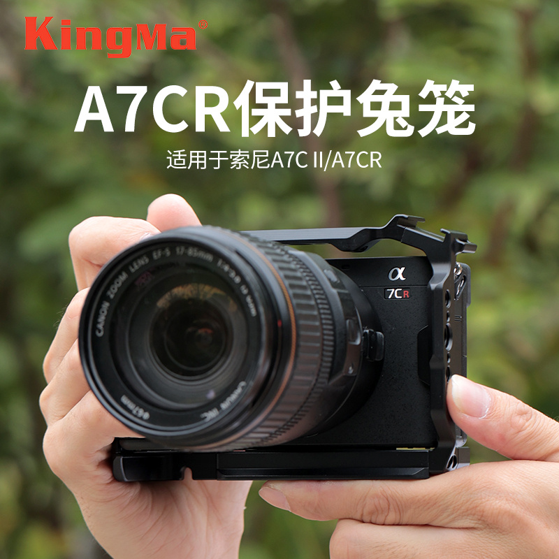Клітка KingMa Cage A7CR-RC з алюмінієвого сплаву розроблена спеціально для фотоапаратів Sony Alpha 7CR a7CR і призначена для кріплення допоміжного обладнання: мікрофона , спалахи, накамерного світла, монітора, шарнірних кронштейнів та ін. Зручна та легка конструкція не блокує кнопки на камері, забезпечуючи вільний доступ до батарейного відсіку та слоту для картки пам'яті. A7CR-RC: