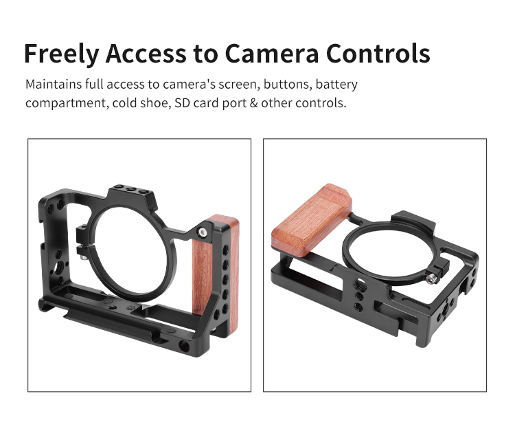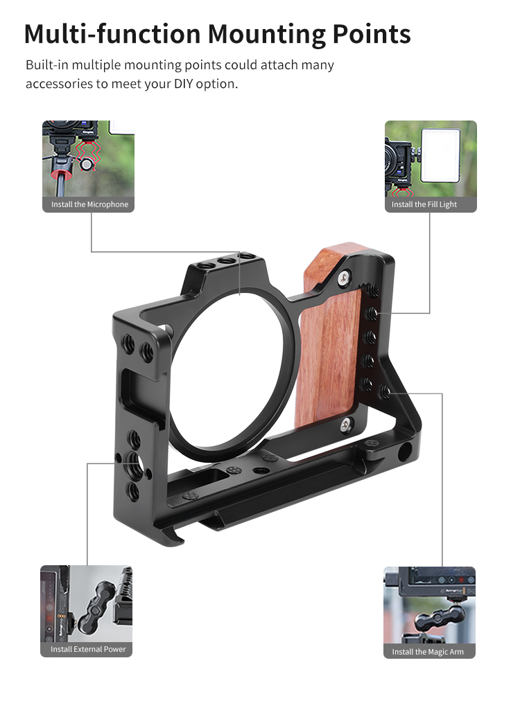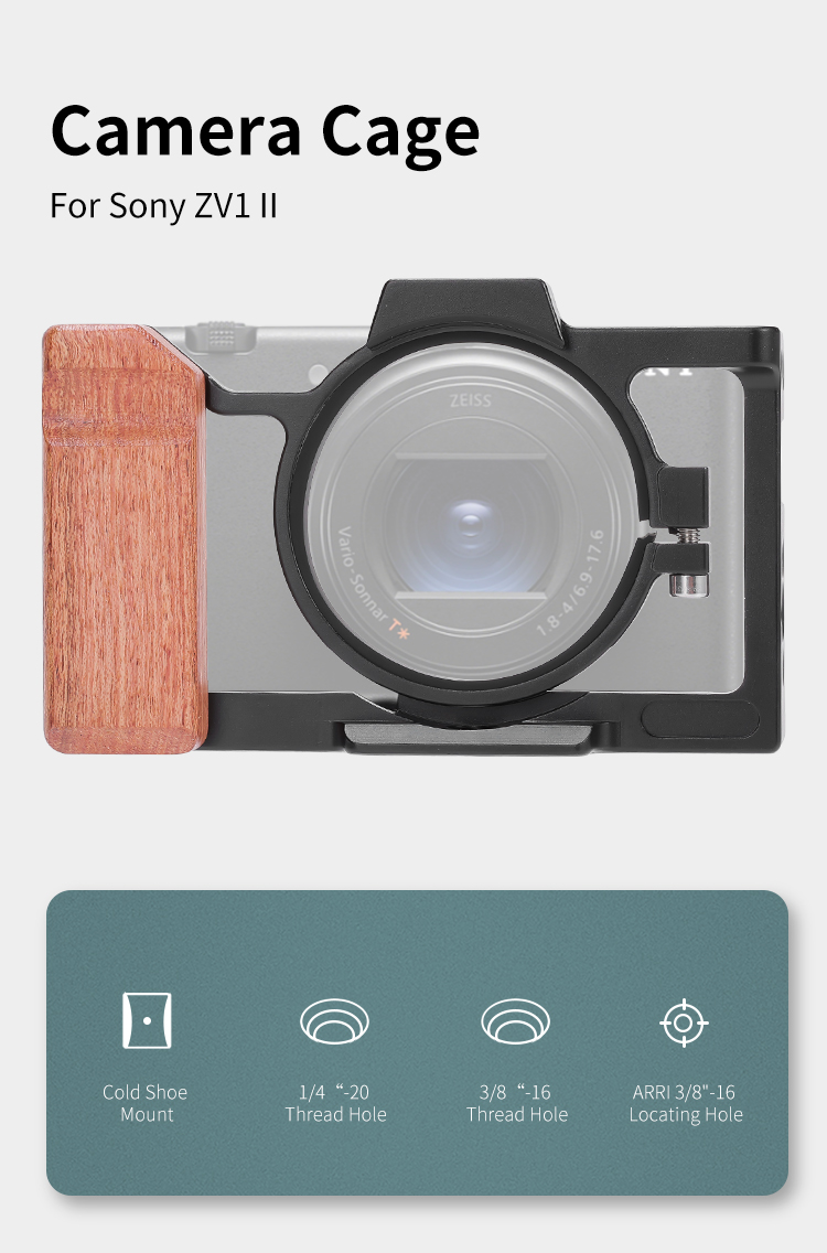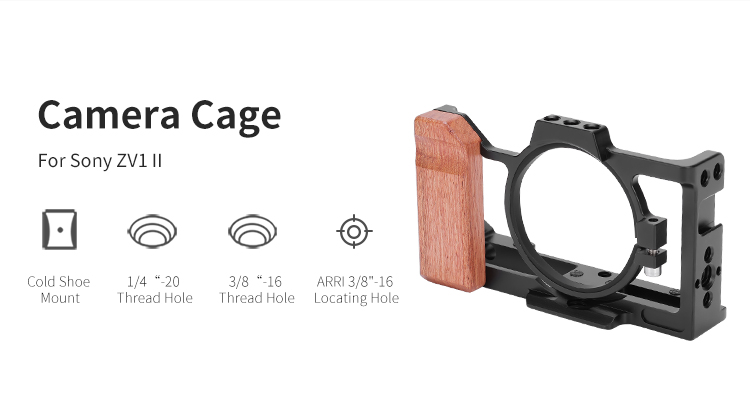 Клітка KingMa Cage ZV1M2-RC з алюмінієвого сплаву розроблена спеціально для фотоапаратів Sony ZV-1 II (Mark 2) і призначена для кріплення допоміжного обладнання: мікрофона , спалахи, накамерного світла, монітора, шарнірних кронштейнів та ін. Зручна та легка конструкція не блокує кнопки на камері, забезпечуючи вільний доступ до батарейного відсіку та слоту для картки пам'яті. ZV1M2-RC: