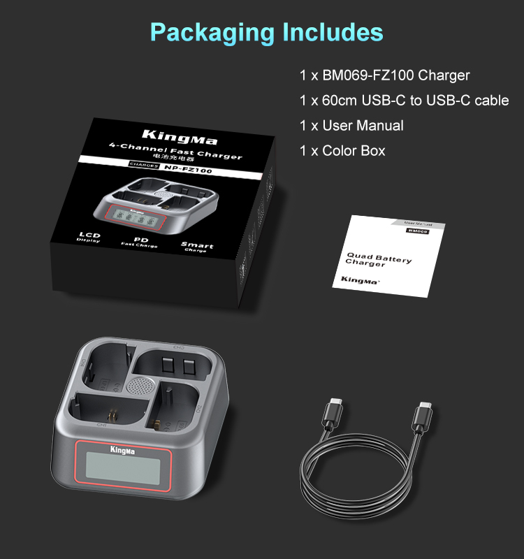 | Модель | KingMa BM069-FZ100 4-Channel Battery Charger |