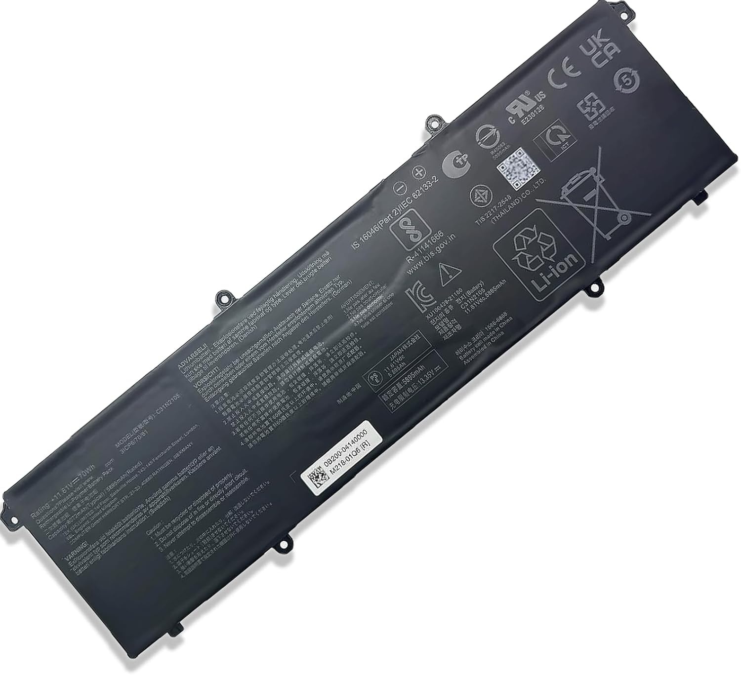 Ця батарея виготовлена з високоякісних матеріалів, що гарантує тривалість служби. Вона пройшла ретельні випробування, щоб гарантувати оптимальну продуктивність, безпеку та сумісність з вашою моделлю ноутбука ASUS.