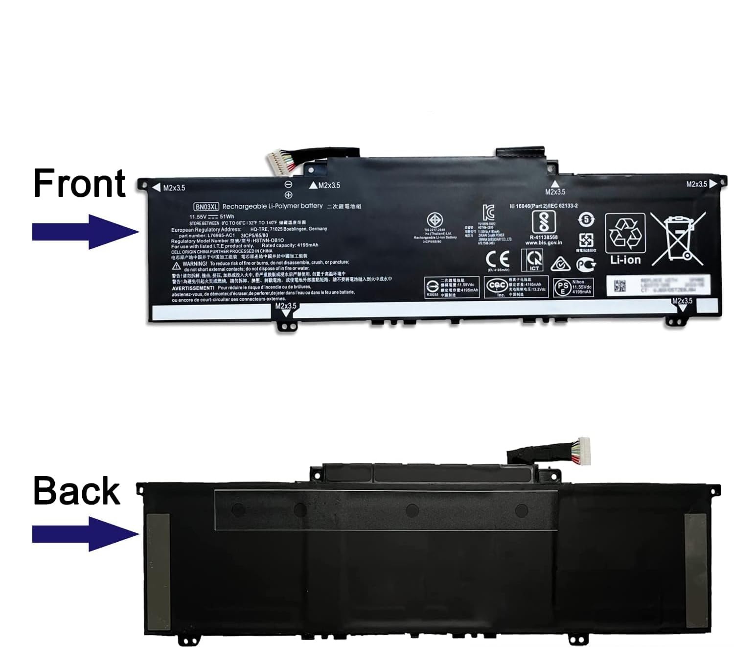З ємністю 4195 mAh (мАг) та рейтингом напруги 11.55 V (В) і міцності 51 Wh (Вт/год), ця батарея забезпечує достатню потужність для тривалого використання. Позбудьтеся частого заряджання та насолоджуйтесь батареєю, яка відповідає вашому активному способу життя.