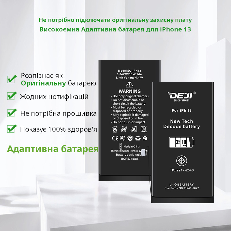 - Акумулятор DEJI iPhone 13 (3510 mAh) для Apple