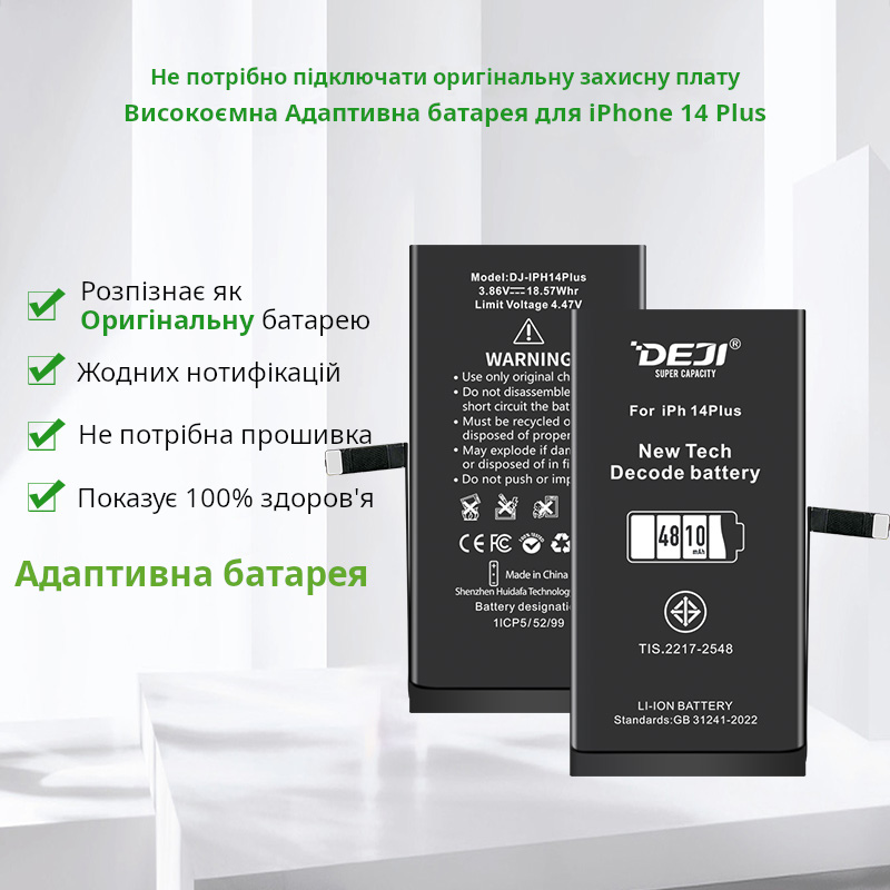 Адаптивний акумулятор (4810 mAh) для iPhone 14 Plus A2632 / A2885 / A2886 / A2887 (DEJI) | Розпізнається iOS як оригінал | Не потребує прошивки